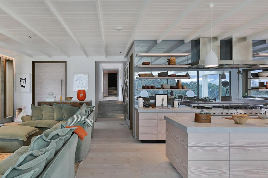The bespoke Queenstown kitchen was crafted by the CWW team using a natural timber finish and soft close cupboards / drawers. Designed to flow on seamlessly from the lounge and dining area the kitchen becomes the heart of the property. The open shelving adds interest and a textured, lived in feel.